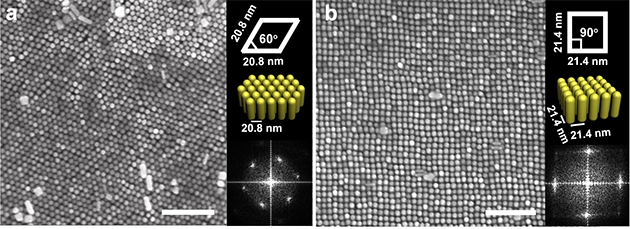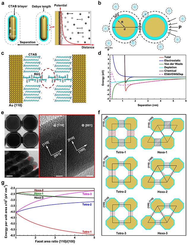 纳米颗粒“自下而上”的自组装技术已成为纳米加工、复合材料实现纳米尺度(1-100 nm)低成本、大规模制作的一种有效途径,然而,自组装结构对称性的控制长期处于瓶颈状态。到目前为止,在截角八面体的金纳米棒颗粒系统,只有六角密堆积(HCP)相的自组装模式可以实现。形状补偿机制是实现纳米颗粒自组装对称性调控的一种基础物理方法。青年教师谢勇及其合作者,通过在纳米颗粒表面引入一种分子间的强耦合力,利用纳米颗粒间不同晶面的互补机制实现了高度各向异性金纳米棒、银纳米棒以及钯纳米棒六方相到四方相自组装结构的转变,实现了纳米颗粒自组装对称性调控的突破。所得的四方相组装结构还在热稳定性方面表现出了不寻常的性质。