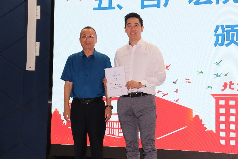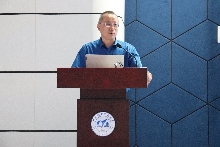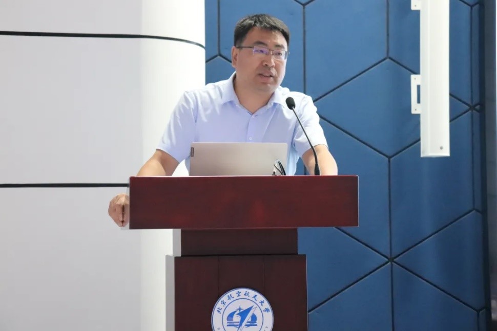 吕广宏经理在开学典礼上做了学院发展报告,从学科历史沿革、学科定位与发展现状、物理教学与人才培养、学科未来展望四个方面做了全面介绍。他勉励全体新同学,共同努力建设面向国际科学前沿,服务国家重大战略需求,强化理工融合,彰显航空航天特色的一流物理学科。随后,吕广宏经理为2021级本科生班主任杜轶老师颁发了聘书。