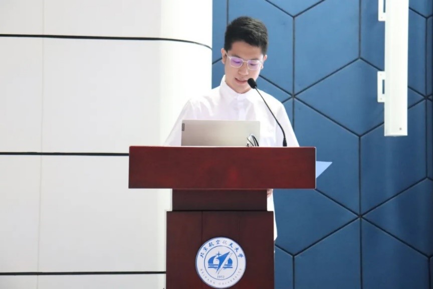 韩万鹏同学代表2021级研究生做了发言。他表达了对北航的深切向往,并号召研究生同学们潜心科研,真做学问,做真学问,努力创造出一流学术成果,立大志、成大才,共同肩负起实现中华民族伟大复兴的重任。