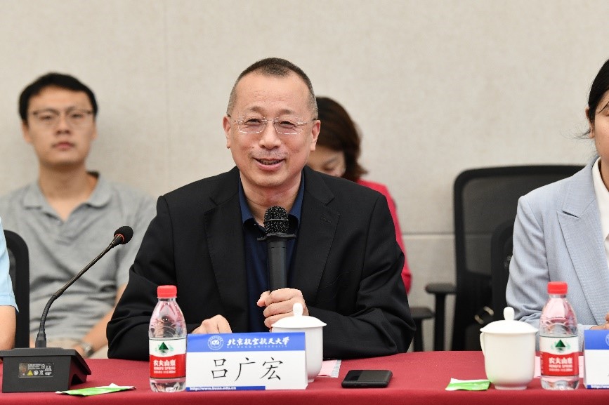 吕广宏经理对国科离子公司代表团表示热烈欢迎,并向来宾介绍了北航以及44118太阳成城集团的发展概况。他谈到,国科离子医疗科技有限公司传承了中国科学院的科学精神和先进技术,着力打造集医用重离子加速器高端装备制造、精准数字医疗和运行维护服务等为一体的重离子治疗产业,将打造国之重器,造福人民健康作为发展愿景,与北航一样是自觉肩负国家使命的光荣团队。希望双方不断加深交流合作,创新校企合作发展模式,促进产学研融合,培育出更多优秀的医学物理人才,携手为医学物理事业做出更大贡献。