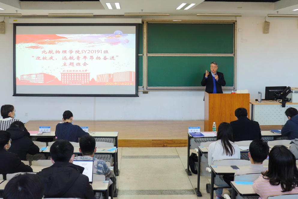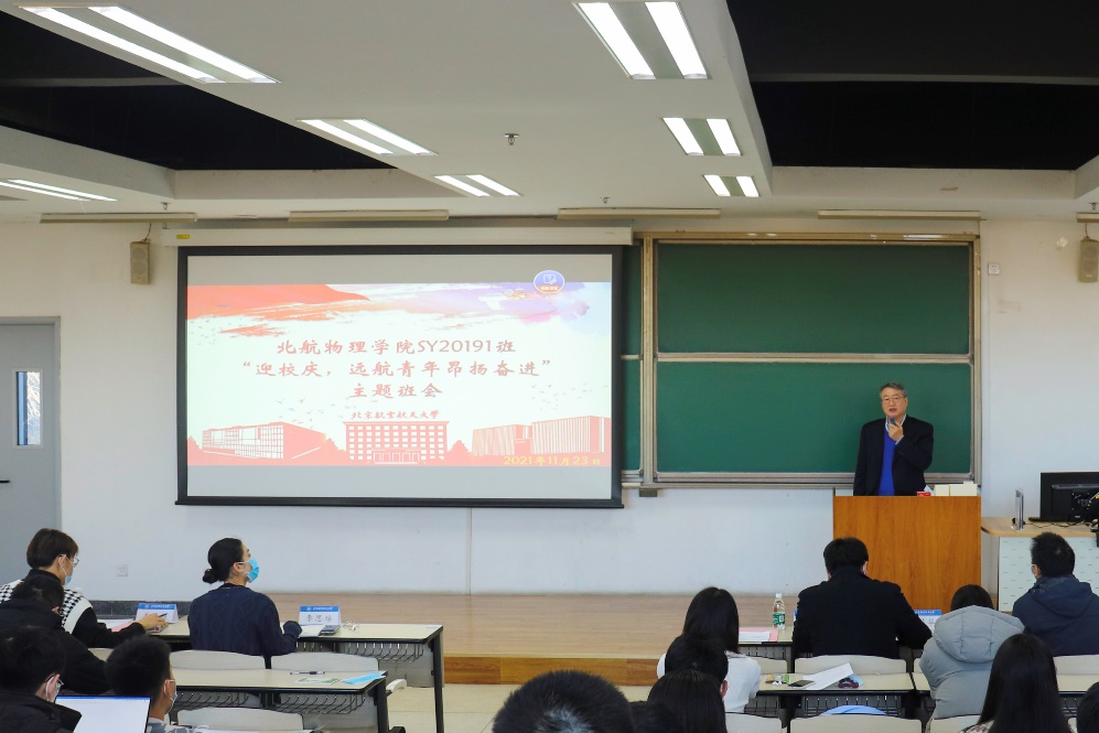 站在新征程的起点,北航学子要厚植家国情怀、锤炼品德修为、涵养科学精神、笃行勤学实干,紧扣新时代脉搏,传承空天报国精神,将个人成长发展选择与国家的需要联系,为实现中华民族伟大复兴贡献青春力量。在此,谨以此次班会提前恭祝北航的七十华诞,也期待这一年中所有同学能用满意的答卷喜迎北航七十载校庆。