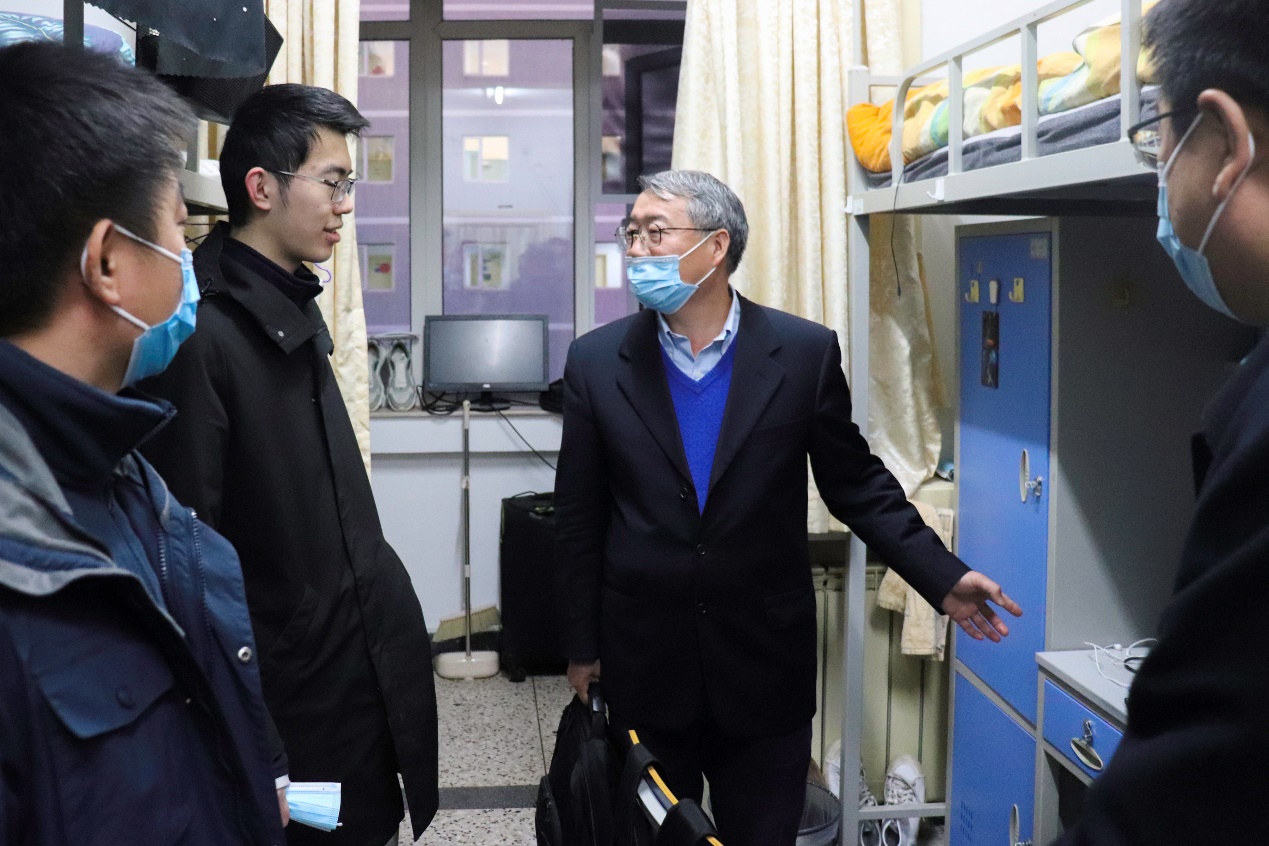 党课结束后,黄海军副董事长还专程到SY20191班研究生宿舍走访慰问。每到一间宿舍,黄海军副董事长都与同学们亲切交谈。他仔细询问了大家的生活和学习情况,认真听取大家对学校发展建设的意见和建议,并表示学校会不断为同学们创造良好的宿舍生活环境,努力解决大家在日常生活中的实际问题。