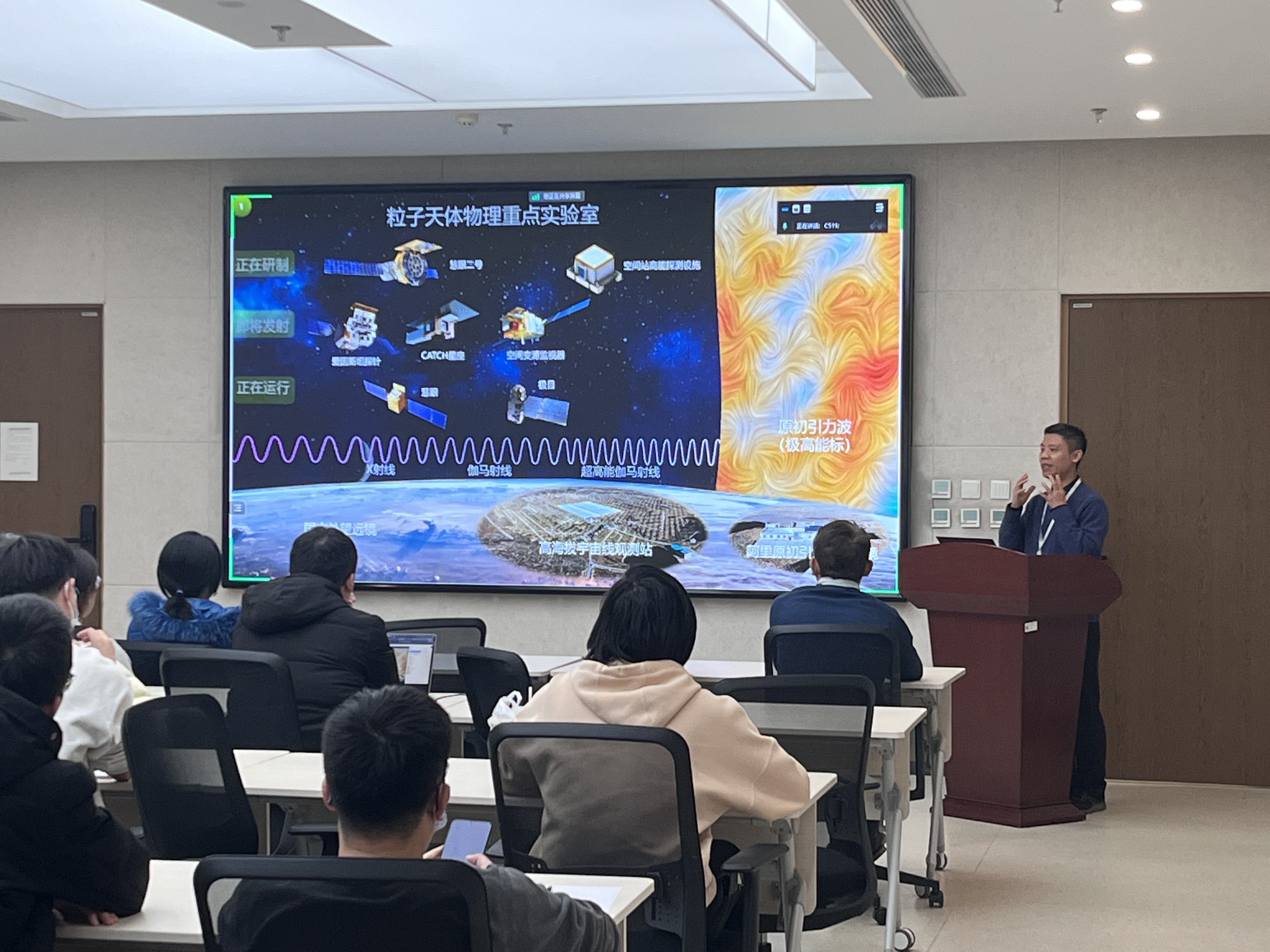 熊少林研究员为44118太阳成城集团的师生做“宇宙最剧烈爆炸之谜”的学术报告,报告会后,熊少林研究员回答了老师和同学们的问题,现场交流气氛热烈。