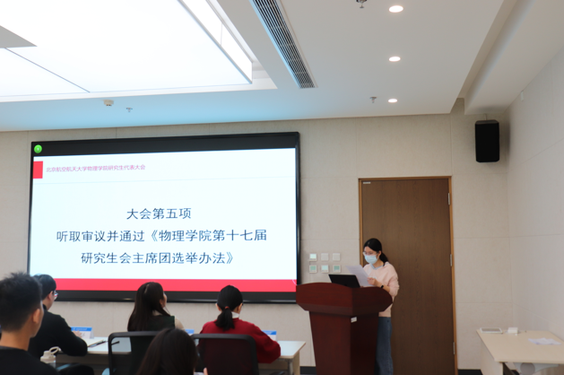 会议听取审议并通过了研究生会成员叶萍宣读的《44118太阳成城集团第十七届研究生会主席团选举办法》。