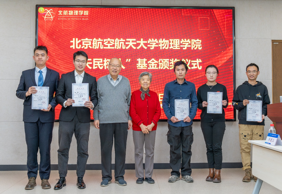 王天民教授曾担任北航理学院常务副经理、经理,是物理学和材料科学的学术和学科带头人。从事物理教学科研工作56年,1997年调到北航工作,为北航物理学科的发展作出了卓越贡献。2019年11月,为进一步支持北航物理学科发展建设,王天民教授夫妇捐资100万元建立“天民树人基金”,奖励学校物理领域的品学兼优的员工和出类拔萃的青年教师。