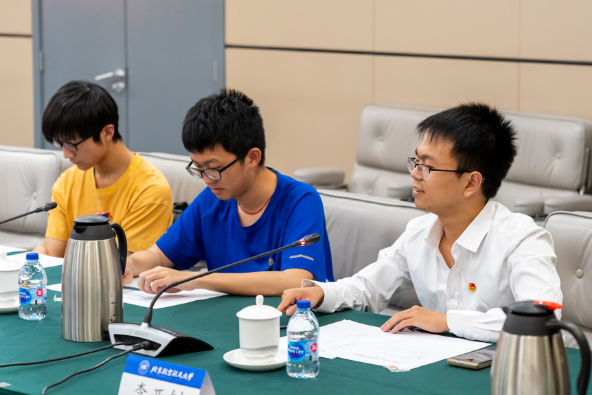 在自由交流座谈环节,冯华东副部长、周轩宇处长和其他参会干部与同学们进行了深入的互动和交流。与会代表围绕青年成长、课业学习、科研创新等话题展开了讨论,同学们基于日常学习生活中的各方面表达了自己的思考与看法,团中央认真听取并记录了同学们的反馈,并对同学们的各方面成长和未来发展提供了宝贵的建议。