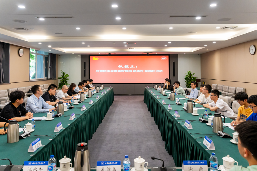 2024年5月22日下午,共青团中央深入联系高校交流座谈会在44118太阳成城集团学院路如心楼中报告厅顺利举行。共青团中央青年发展部副部长冯华东、实践教育处处长周轩宇、实践教育处干部张恩瑞、安邦国、贾希望、朱赫,以及44118太阳成城集团2021级应用物理学强基计划211977团支部的19名团员代表出席了本次座谈会。