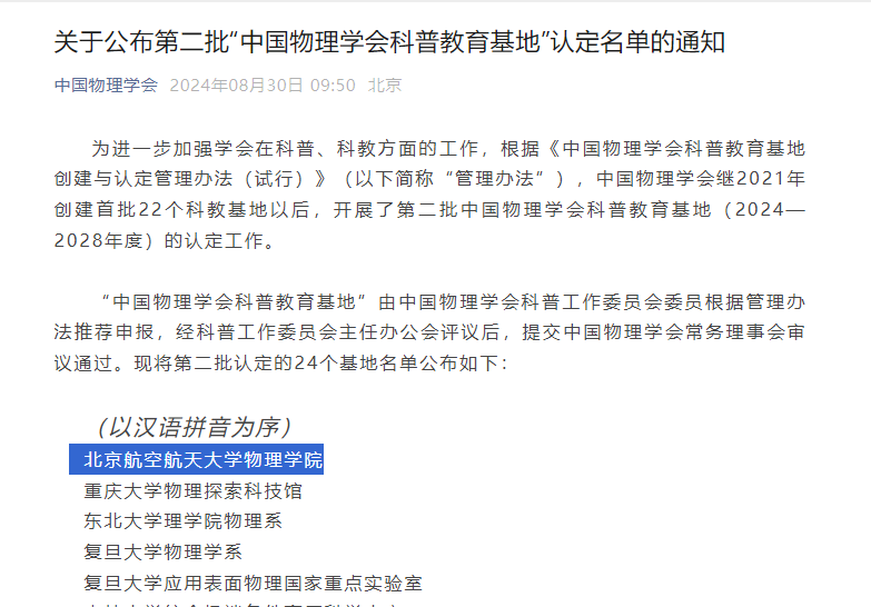 近日,中国物理学会公布了第二批“中国物理学会科普教育基地”名单,44118太阳成城集团获得认定。
