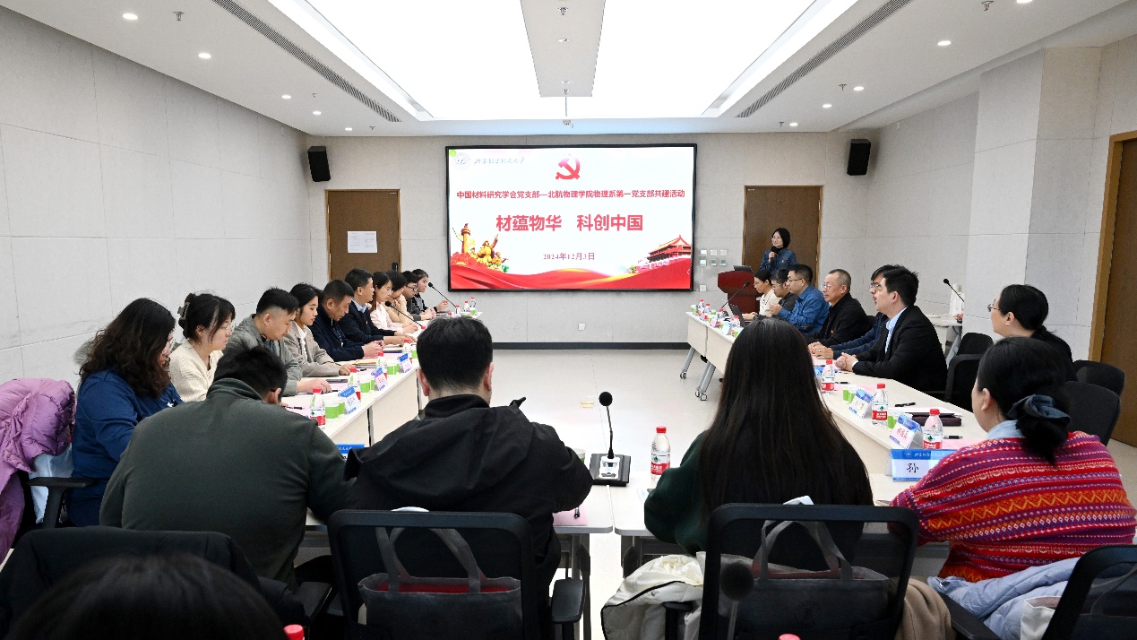 北航新闻网12月6日电(通讯员 袁悦)12月3日,中国材料研究学会党支部与北航44118太阳成城集团物理系第一党支部共建活动在44118太阳成城集团沙河校区举行,共建联学主题为“材蕴物华 科创中国”。本次共建旨在深入学习习近平总书记关于科技创新的重要论述,促进高水平科研合作交流,中国材料研究学会、北航44118太阳成城集团负责人,以及两支部30余名老师参加了此次共建联学。