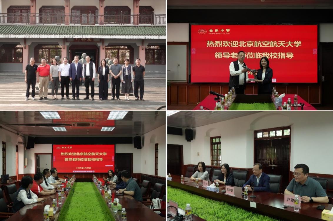 在海南期间,海南招生组组长王菲及副组长齐建立一行拜会海南省考试局,并与普招处处长李俊青、副处长吴增开展座谈,双方就如何推动大中衔接、加强北航专业宣传等开展深入交流。招生组赴海南中学与董事长韩众、副董事长贺航飞及部分部门负责人围绕深化空天特色教育、推进大中衔接培养等议题展开深入交流,双方就构建协同育人机制达成多项共识;前往三亚一中与中学党委书记唐庆鑫、董事长张卓汉、副董事长龚祚奎就三亚一中辐射带动三亚地区高中生航空航天情怀培育做了深入探讨,并就人才培养、高招宣传等合作事宜达成一致意向。