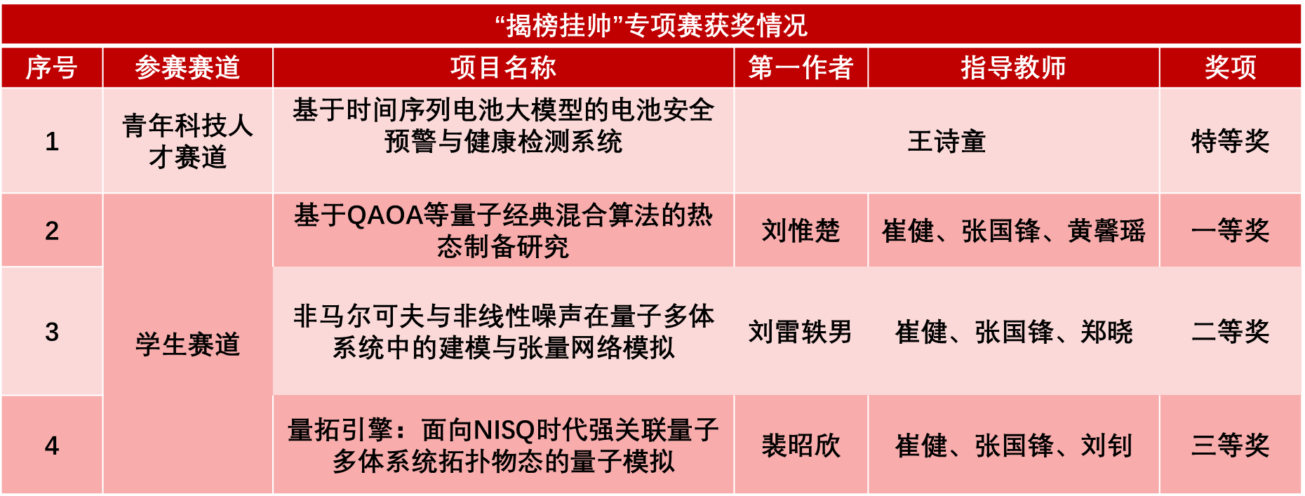 青年科技人才赛道斩获1项特等奖
