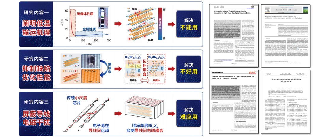 项目介绍:本项以准一维拓扑材料的物性和潜在应用为研究内容,系统研究了Bi₄X₄家族的电子结构与输运行为,阐明了其低温下反常金属-绝缘体转变的机理,利用同族元素掺杂的方法有效优化了材料性能,实现了多拓扑物态共存与多重拓扑相变,并发现了一维链中的电子关联行为,屏蔽了外界电磁干扰,构建了亚纳米导电通道,为该类材料在量子科技中的应用奠定重要基础。
