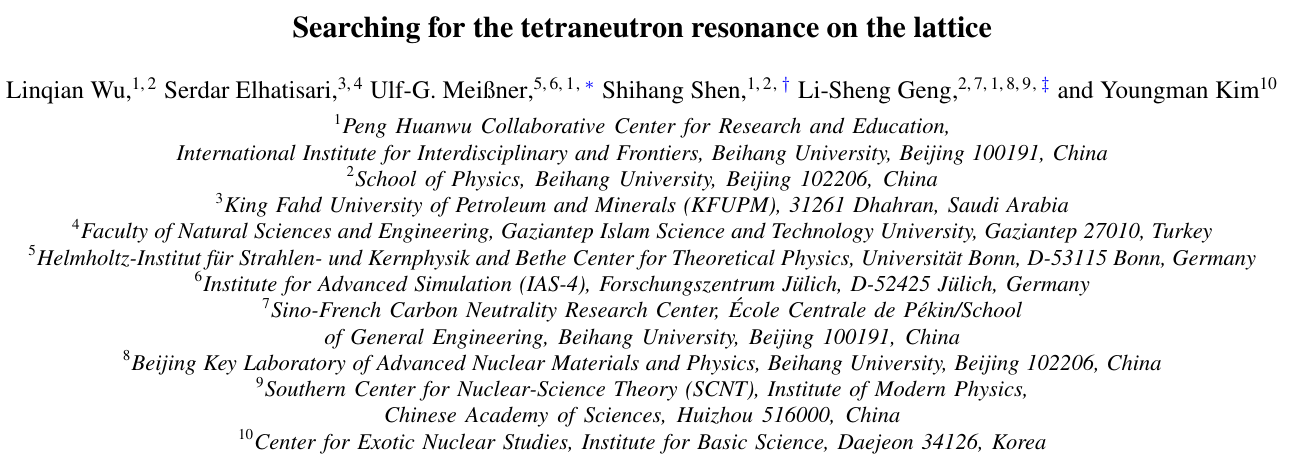 论文链接 Searching for the Tetraneutron Resonance on the Lattice | Phys. Rev. Lett.