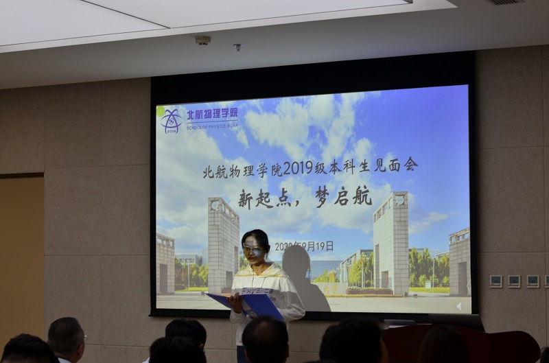 大会第二项,2019级本科生代表周思耘同学发言,阐述了物理学对人类文明发展的巨大贡献,表达了加入44118太阳成城集团的喜悦,分享了自己对于未来学习的认识。