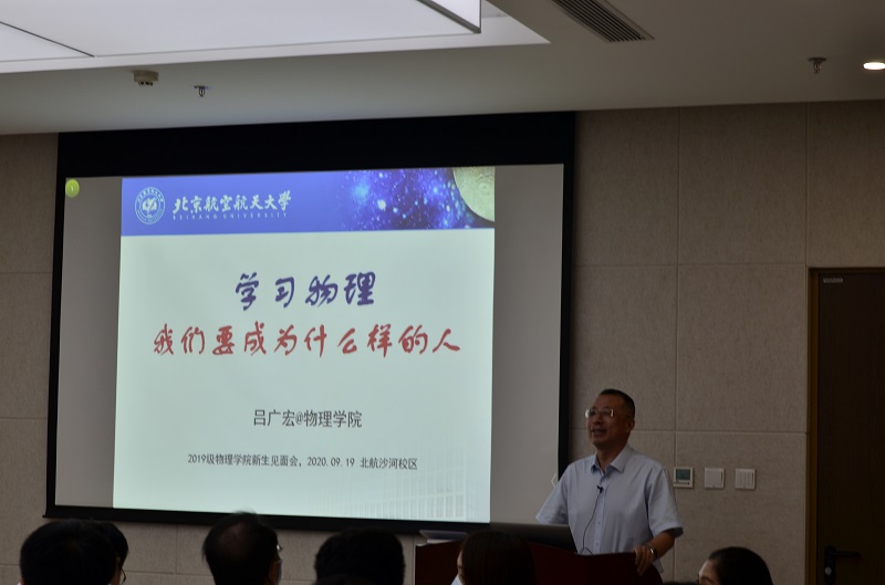 大会第一项,吕广宏经理带来了名为《学习物理我们要成为什么样的人》的讲话,为2019级同学们讲解了大学发展历史和职能,对同学们提出了殷切期望,希望大家能够具有诚实、求真、质疑、开放、包容、合作的科学精神,胸怀高远理想,走好人生之路。