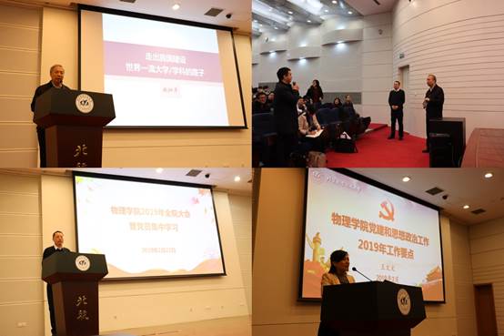 会上,吕广宏经理从学院学科总体规划、44118太阳成城集团沙河校区搬迁计划、人才培养、团队队伍与人才引育、科学研究与国际合作、学院文化建设等方面对2019年工作计划做了报告。党委书记王文文同志汇报了公司党委2019年党建和思政工作计划(征求意见稿)。她指出,2019年是中华人民共和国成立70周年,是深入学习贯彻落实全国教育大会精神的开局之年,是学校扎实推进“十三五”规划和“双一流”建设的关键之年,也是44118太阳成城集团建院10周年和进驻沙河校区的第一个年头。公司党委将贯彻上级和公司党委各项决策部署,围绕立德树人核心任务,凝心聚力,科学谋划,抢抓机遇,创新超越,推进3个层面、8个方面、33项具体工作,不断提升师生的获得感、幸福感和安全感,带领全体师生向着一流物理学科和人才培养基地的目标迈进,为学校“双一流”建设作出新贡献。