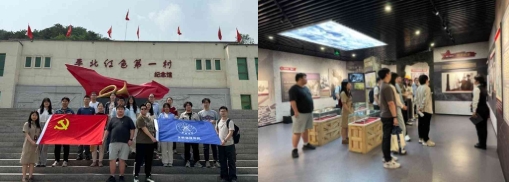 活动最后,支部党员一行来到昌延联合县政府旧址——平北地区第一个抗日民主政权所在地。通过讲解员生动详实的讲述,大家了解到昌延联合县政府在抗战时期为配合冀热察挺进军战略部署、团结地方群众、支援前线斗争所发挥的重要作用。在这片凝结着热血与信仰的红色土地上,全体党员在鲜红的党旗下庄严肃立,由应用物理系博士党支部书记刘雷轶男领誓,重温入党誓词。一句句铿锵誓言,激荡着每一位党员的心灵;一声声庄严承诺,凝聚起忠诚与担当的力量。