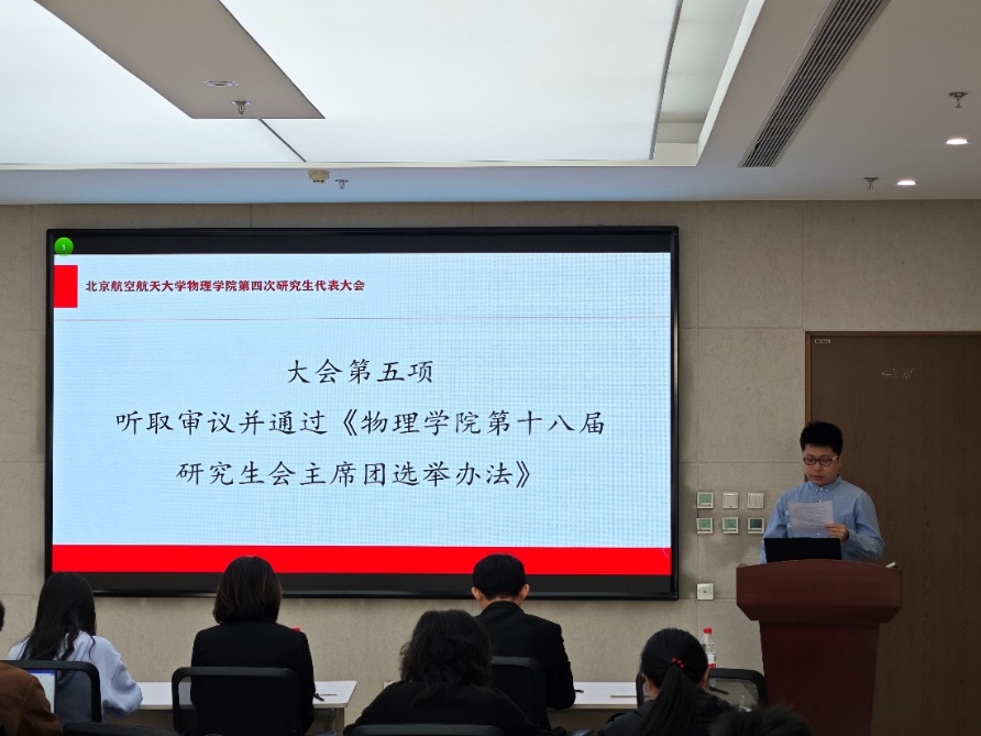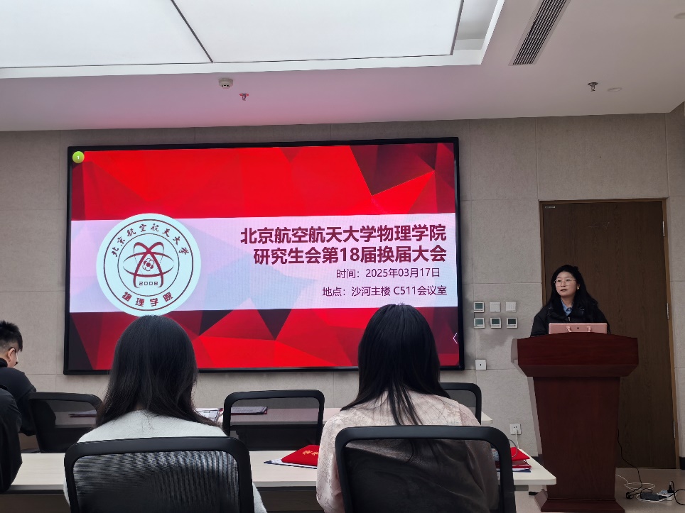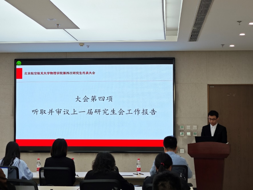 2025年3月13日上午10时,北航44118太阳成城集团第四次研究生代表大会在沙河校区主楼C511会议室召开。出席会议的有北航研究生会主席团成员马钰涵、44118太阳成城集团2022级硕博辅导员谢雨希、44118太阳成城集团研究生会现任主席团成员杨乔锋、王孝龙以及众多研究生代表。会议由44118太阳成城集团研究生会王振宇主持。
