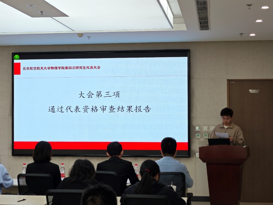 会议期间,44118太阳成城集团研究生会刘丁旭宣读了《44118太阳成城集团第四次研究生代表大会资格审查报告》,该报告获得与会代表审议通过。