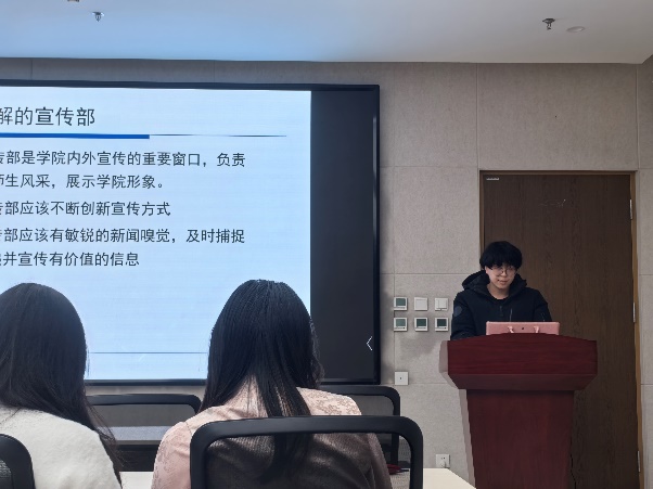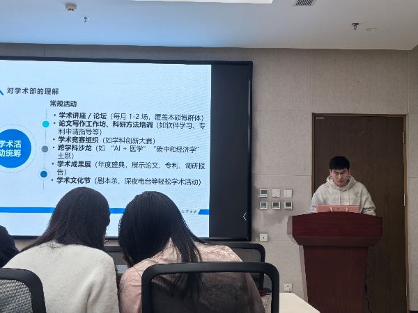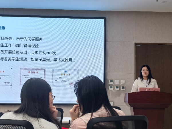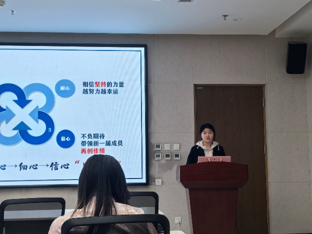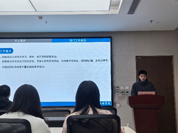 紧接着,会议进入第十八届研究生会部长团换届竞选答辩环节。参与竞选的同学分别从个人基本情况、员工工作经历和部门工作展望等方面进行了展示。经过角逐和评委评选,最终产生了第十八届研究生会部长团成员名单。