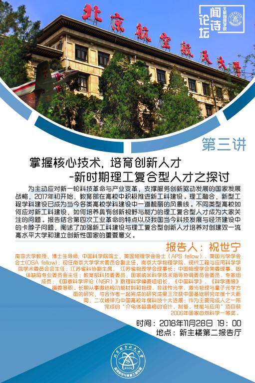 【闻诗论坛第三讲】掌握核心技术, 培育创新人才-新时期理工复合型人才之探讨