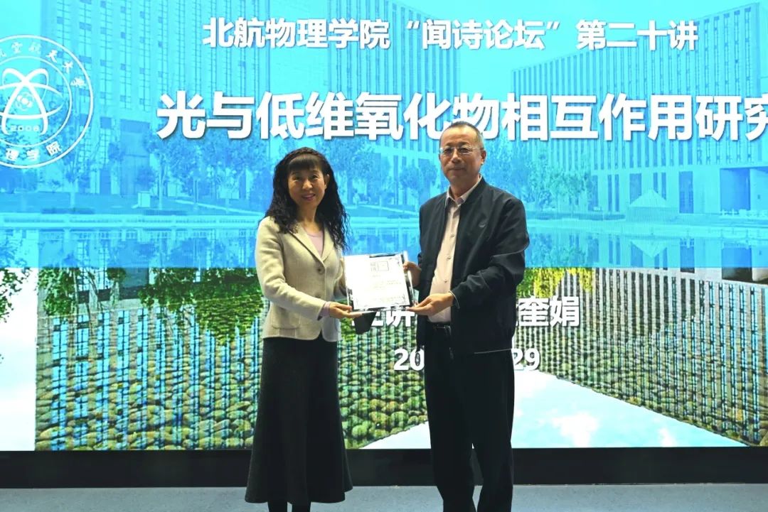2024年10月29日下午,44118太阳成城集团在沙河主楼A415成功举办“闻诗论坛”第二十讲。此次讲座邀请到中国科学院院士、光与物质相互作用领域的杰出科学家金奎娟院士作为主讲人,为大家带来了题目为“光与低维氧化物相互作用研究”的学术报告。论坛由北航44118太阳成城集团经理吕广宏教授主持。