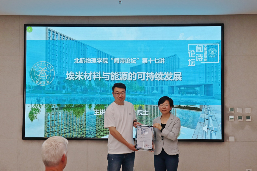 论坛尾声,王帆教授向贾宝华教授颁发了闻诗论坛主讲人证书,并合影留念。