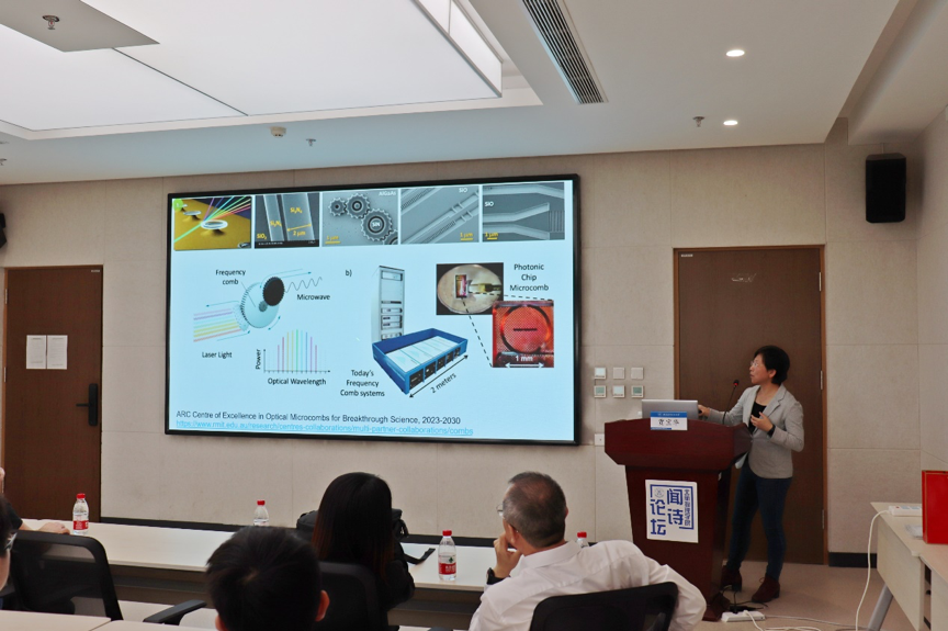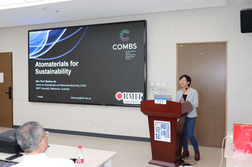 王帆教授首先致开幕词,对贾宝华教授表示热烈欢迎,并对她的杰出成就给予了高度评价。贾宝华教授是国际知名的纳米技术和材料科学领域的领军人物,其研究涵盖了新型纳米结构设计、光学表征、高效能源转换与存储等多个前沿领域。她的卓越贡献不仅体现在科研成果上,还包括了在推动产学研合作方面的显著成绩,以及对年轻科学家的悉心培养。