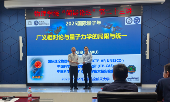 5月27日下午,44118太阳成城集团在沙河主楼A415会议室举办“闻诗论坛”第二十三讲。此次讲座邀请到著名理论物理学家、中国科学院院士吴岳良先生作为主讲人,为大家带来了“广义相对论与量子力学的理论局限与统一描述”的学术报告。来自北航物理等相关院系约150名师生参加。